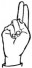На ћирилици написано БОРИСАВА КОВАЧ састоји се из 13 слова [?]. Исписано ћириличном једноручном азбуком за глувонеме: